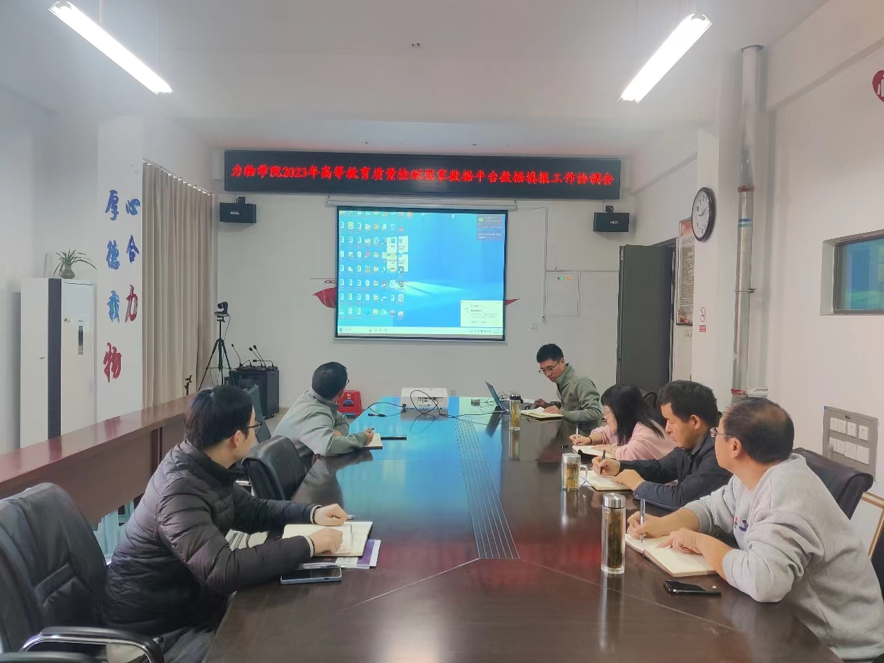 卢小雨传达了10月25日下午学校会议的精神。他强调了2023年高等教育质量监测国家数据库平台数据填报的意义及重要性,并对填报工作的时间节点、任务分工及注意事项进行了说明。