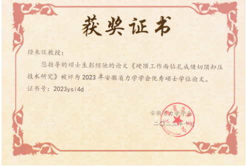 彭绍驰荣获2023年安徽省力学学会优秀硕士学位论文奖