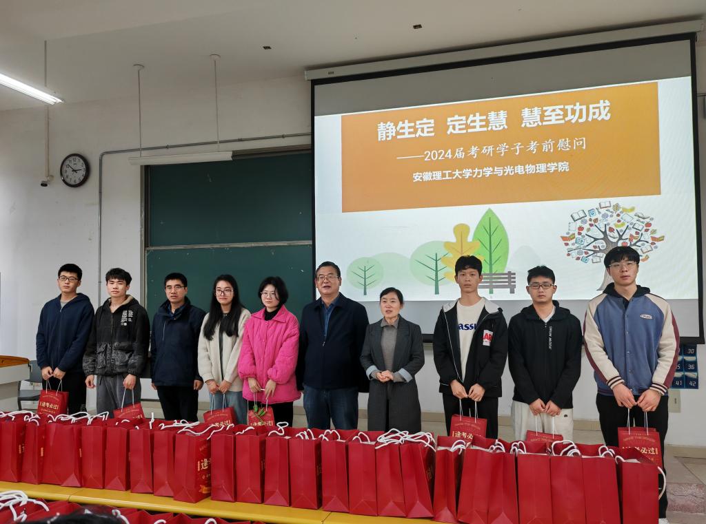 慰问会上,卢小雨详细地询问考研学生复习备考的相关情况,叮嘱同学们保持良好的学习状态,在复习中遇到问题可及时寻求学院老师帮助,学院将全力支持同学们备考。学生工作负责人叮嘱同学们在最后冲刺阶段要凝心聚力,不畏艰难,稳定状态,“静生定,定生慧,慧至功成”,希望大家保持静心、定心、恒心和信心,把握好冲刺关键阶段。孙东升对考研学子长期备考的辛苦付出表示充分肯定,鼓励同学们在最后备考中要全力以赴,坚定信念,高效学习,同时保持良好心态、调整作息,注意饮食营养,以积极饱满的心态迎接考试,并预祝同学们在考试中取得优异成绩。
