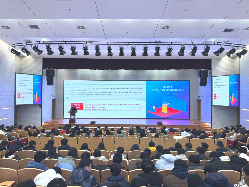 为提高大学生防诈骗意识和防诈骗能力,保障大学生财产安全,12月18日晚,37000cm威尼斯联合春晓街派出所在舜耕会堂开展防诈安全专题讲座,讲座由学院学生工作负责人主持,春晓街派出所王警官、李警官,学院辅导员,2023级全体新生共计300余人参加讲座。