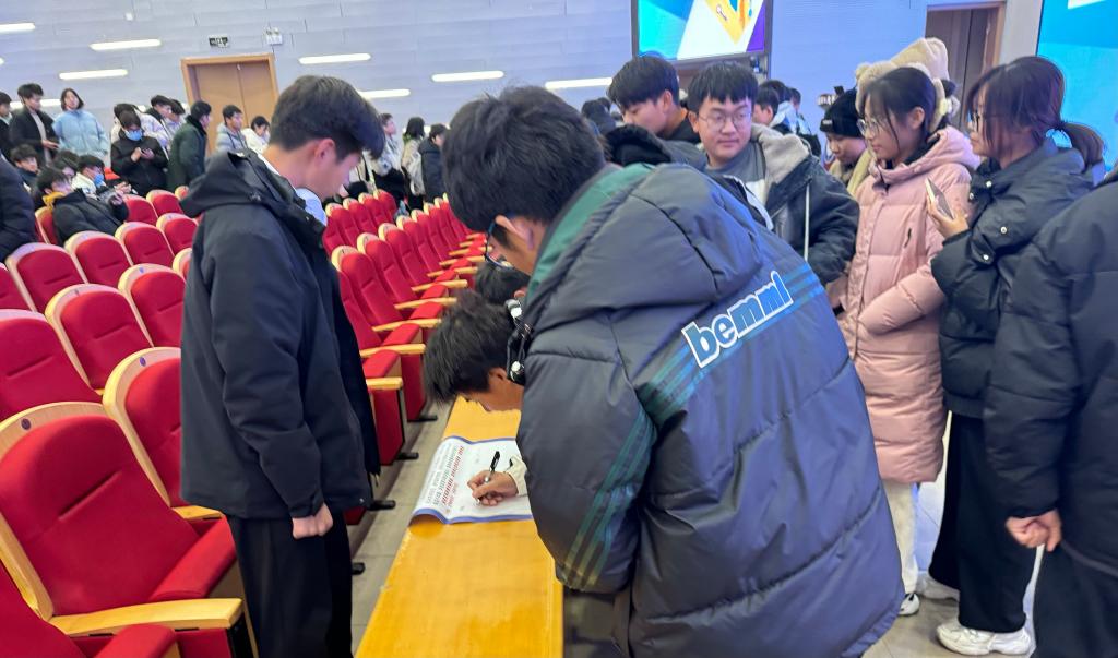 王警官鼓励学生们积极参与防诈骗宣传活动,组织大家签写防诈骗承诺书,同学们分组排队签名承诺:自觉合理消费,坚决克制贪念,理性面对诱惑,自觉学习有关知识,提高防范意识和防范能力。