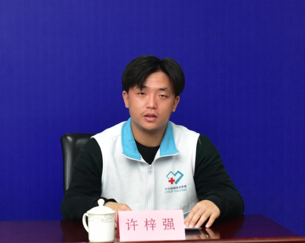 许梓强发言时表示,能有机会二次捐献挽救患者的生命,这是难得的缘分,对于他个人只是多受一点苦,捐献一些可以再生的生命种子,并无大碍,但对于患者,是救命,是他们一家人的幸福,他觉得很值得。捐献完成后,他感觉很轻松、很开心,毕竟又一次挽救了一个年轻宝贵的生命,也给一个家庭带去了希望和幸福。得知自己成为安徽省第600例造血干细胞捐献者,觉得很是幸运,真希望可以带动更多的人加入捐献队伍,让更多的患者有救命的机会,有更多的700例、800例、1000例、10000例尽快实现!