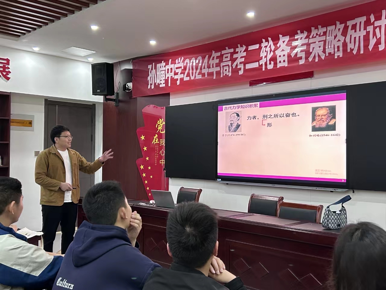 孙疃中学校长刘勇向卢小雨一行表示热烈欢迎。他介绍了孙疃中学的发展历史、师资队伍、学生培养等方面的情况,感谢此次安徽理工大学针对高中学生开展的工程力学和人工智能学科的科普工作,学校将继续秉持“因材施教,全面发展”的教育原则,为安徽理工大学持续输送稳定的优质生源。
