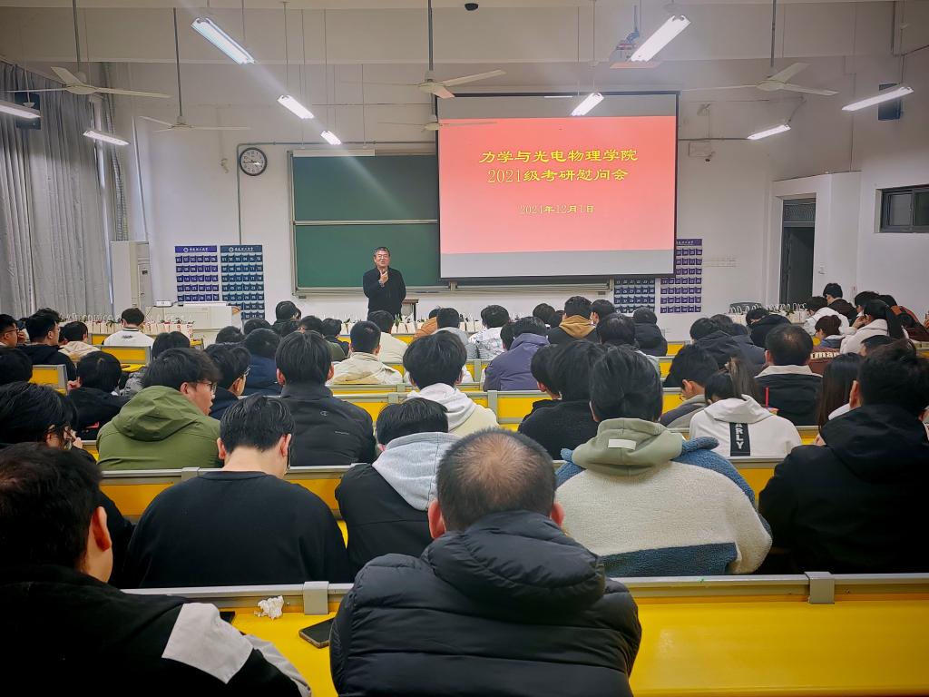 12月1日下午,在2025年硕士研究生入学考试即将来临之际,37000cm威尼斯在明理南112教室举办考研慰问大会。学院党委书记孙东升、党委副书记郑孝莲、2025届毕业年级辅导员参加慰问活动,共同为考研学子送上温暖与祝福。