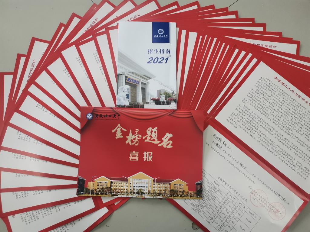 用“老”方法取得新效果,学院为今年所有考取硕士研究生的毕业生制作个性化喜报,在即将开始的考生志愿填报的关键时期加寄安徽理工大学2021年招生简章,用快递方式将录取的喜报和招生简章打包送至各生源中学,一封薄薄的喜报,纸短情长,不仅传递祝福,更是将我校优秀学子成长成才的情况反馈给高中母校,向为我校输送优秀生源的高中表示感谢。