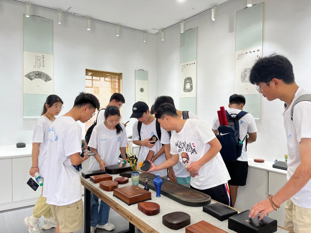 为深入了解歙砚千年历史文化,体验国家级非遗项目歙砚的制作过程,7月12日上午,实践团前往婺源县大畈村婺源歙砚文化博物馆进行调研。在工作人员的细心讲解中,实践团学习到了歙砚文化的起源和发展,以及歙砚的用料选材和制作工艺,感受歙砚文化的独特魅力。