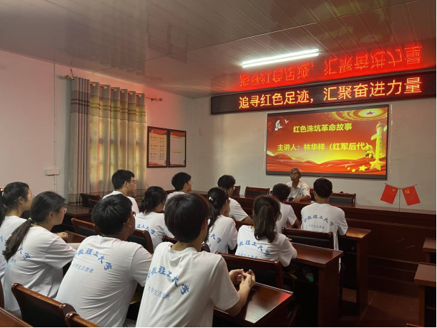 参观结束后,红军后代林华祥为实践团成员讲述了红色洙坑革命故事,一桩桩感人事件、一件件历史文物、一张张珍贵照片,生动再现了革命英烈艰苦奋斗的光辉岁月,重温革命道路的艰难险阻,激励每一名实践团成员砥砺前行,坚定理想信念,艰苦奋斗。