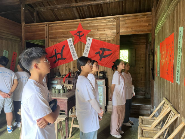 在中共婺源县委旧址内,实践团全体队员举右拳郑重宣誓,重温入团誓词。在团旗下接受心灵和精神的净化与洗礼。掷地有声的入团誓词,时刻警醒着同志们奋勇拼搏、砥砺前行。