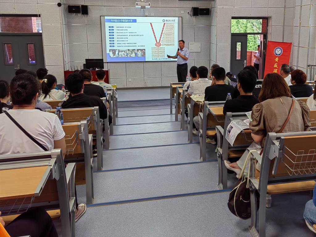 6月25日上午,安徽理工大学专场宣讲报告会在淮北一中(新校区)阶梯教室报告厅举行,报告会由淮北一中校长马颖主持。宫能平详细介绍了学校办学历史、办学优势、人才培养、专业特色、学科建设及招生就业等方面的情况,展示了安徽理工大学的新气象、新变化、新成就。他从”比肩‘双一流’的安理大“”不一般的本科生培养“”手把手教你报安理大“等三个部分向参会的中学老师、考生、家长等近两百人推介安徽理工大学。