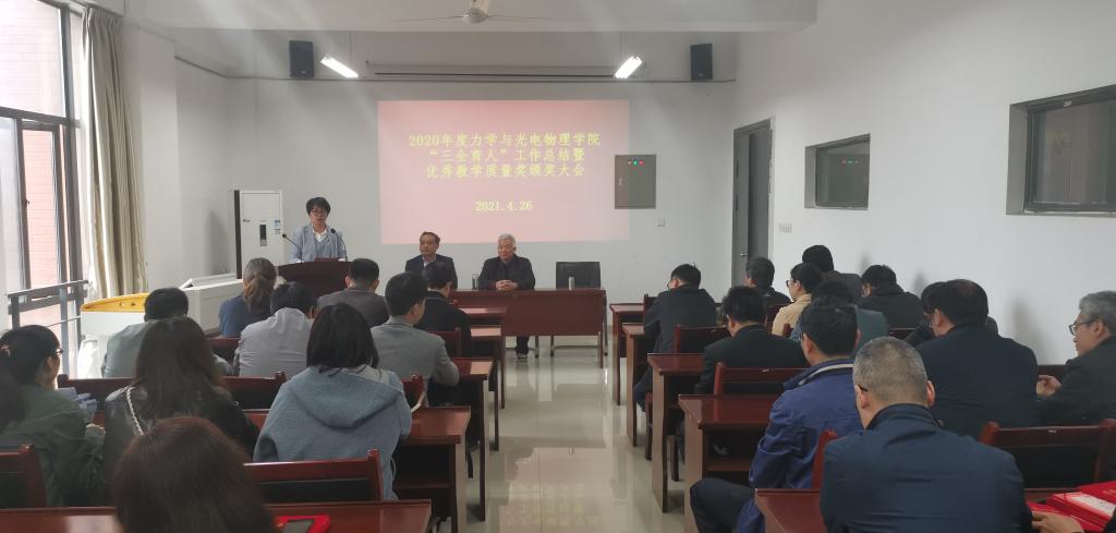 4月26日,37000cm威尼斯召开2020年度“三全育人”工作总结暨优秀教学质量奖颁奖大会,全体教职工参加会议。会议由副院长圣宗强主持。