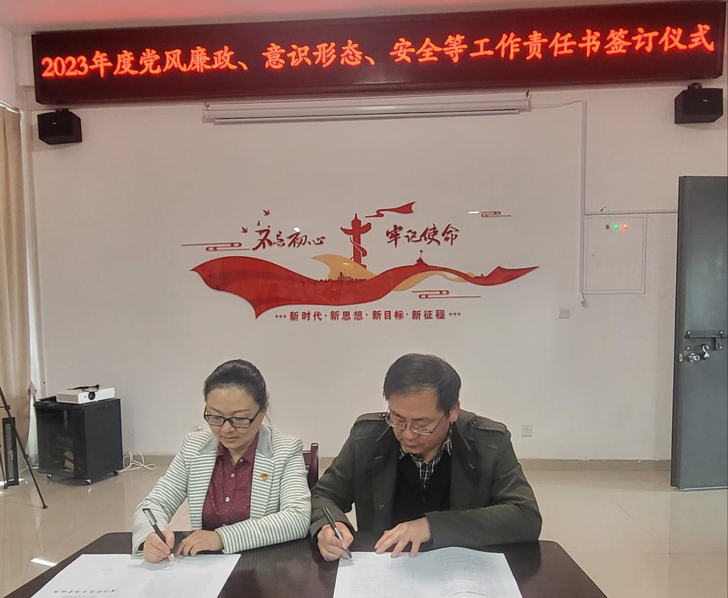 会后,学院同各系(室)签订2023年党风廉政建设、保密、安全稳定等责任书。