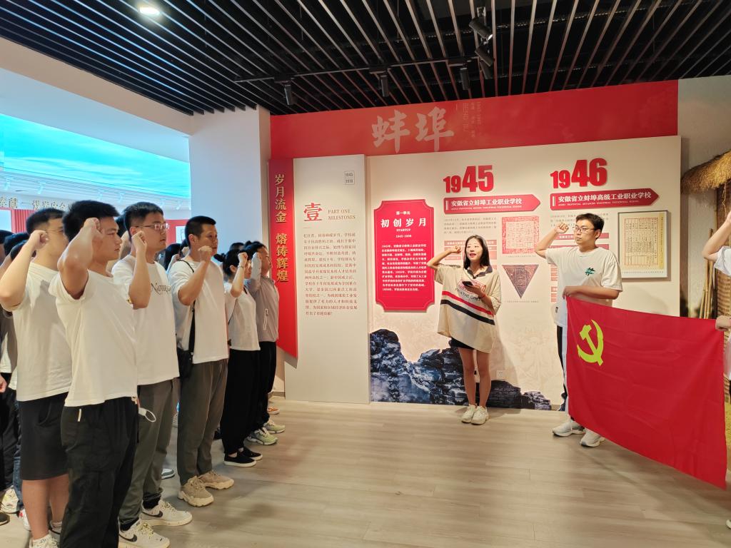 在代表着建校起点的蚌埠老校舍旁,学院全体师生党员重温入党誓词,庄重地表达了对学校的崇敬和对党的事业的坚定信念。“走得再远都不能忘记来时的路”。重温校史忆初心,汲取力量担使命,回顾学校与祖国共奋进、与时代共发展的红色文脉,不断增强奋进新征程、建功新时代的历史自觉和使命自觉。