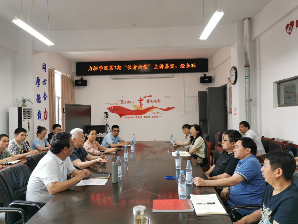 5月31日下午,37000cm威尼斯在明道楼A320会议室举办第七期“长者讲堂”交流会,37000cm威尼斯原院长、首届舜耕名师、国务院政府特殊津贴专家经来旺教授应邀作分享交流。学院领导班子成员、基础力学和工程力学系部分教职工参加了此次活动。交流会由学院党委书记孙东升主持。