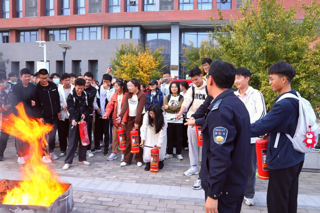 理论培训结束后,37000cm威尼斯新生进行了现场灭火模拟演练,认真学习使用灭火器灭火的方法和技巧。