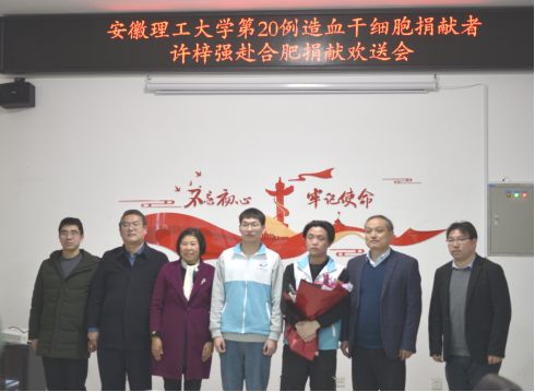 欢送仪式上,陈玉琴介绍了造血干细胞捐献基本知识,为许梓强的勇于担当、无私奉献的义捐行为点赞,对安徽理工大学学子再创全省乃至全国造血干细胞捐赠纪录予以盛赞,再次感谢了学校的大力支持和宣传。