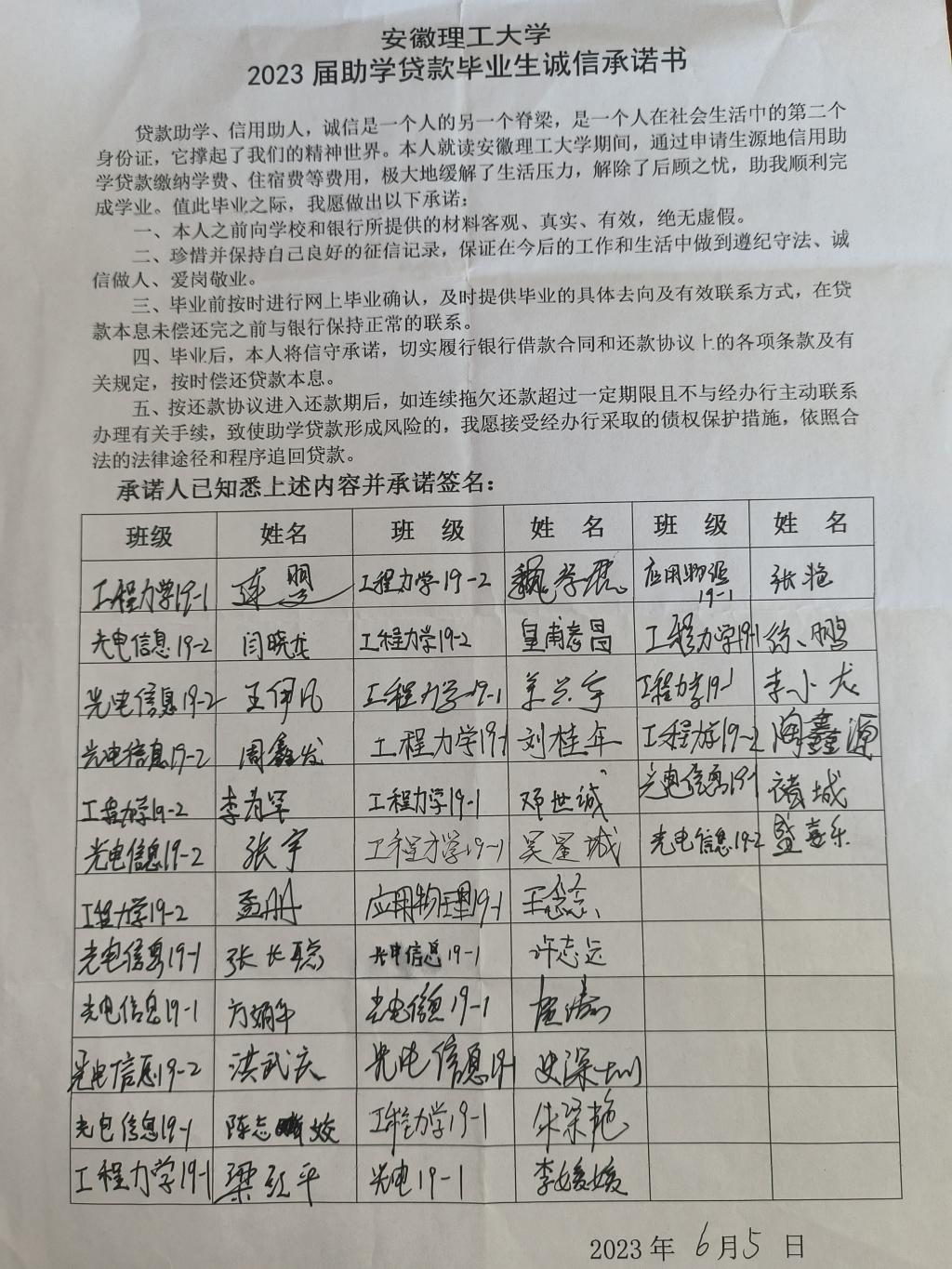 召开诚信教育主题班会,增强学生诚信意识。学院各年级辅导员召开诚信教育主题班会,低年级辅导员向学生重点强调要养成诚信品质,自觉自律,杜绝考试作弊行为。毕业班辅导员就生源地信用助学贷款及如何做好毕业还贷工作给同学们进行了详细解读,解答了毕业生关于正常还款、提前还款、逾期还款、违约责任等问题,同学们会后签订了诚信还款承诺书。