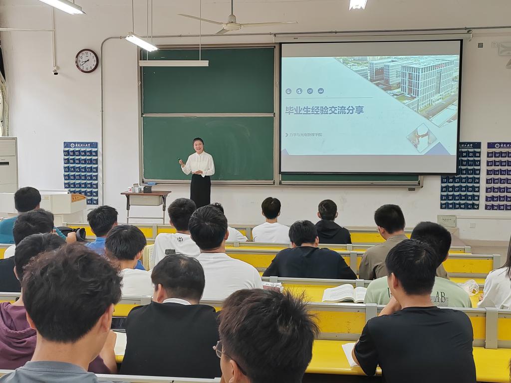 “如何更加充实地度过大学生活?”“怎样面对大学毕业的选择?”在互动提问环节,她就同学们提出的的问题做了真诚耐心的解答,勉励学弟学妹们在大学期间要志存高远、脚踏实地,珍惜时间、做好规划,积极投身社会实践。