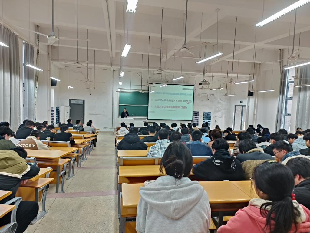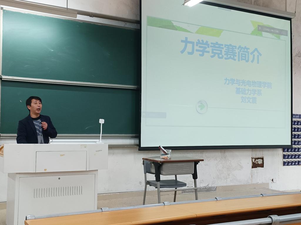 学院邀请创新学院王青华老师和我院李成龙、刘文震老师担任主讲嘉宾。三位老师分别以“互联网+”、“物理学术及实验竞赛”和“力学竞赛”为主题,向同学们详细介绍了赛事来历、参赛方式、我校往届获奖情况等竞赛相关内容。