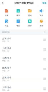 参加材料力学期中测验的部分班级截图