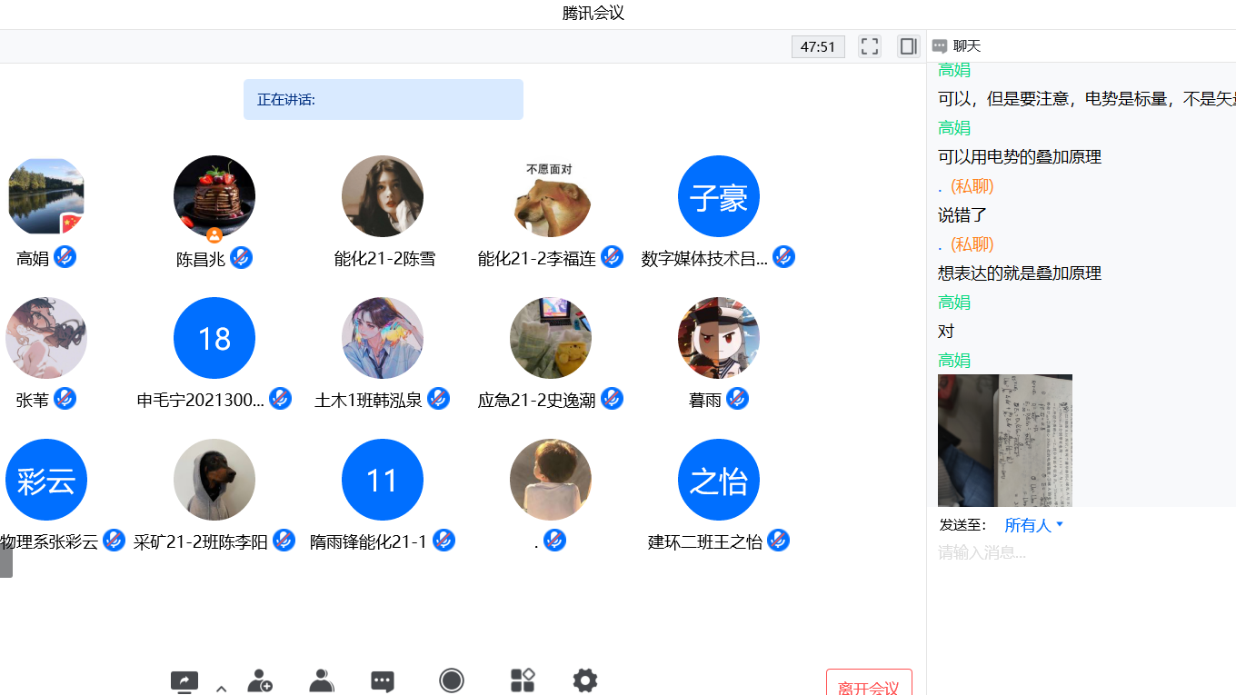 在2021级《大学物理》课程答疑中,光电物理系高娟、陈昌兆和张彩云三位教师利用腾讯会议在线答疑,针对近期学生们学习的静电场内容进行知识梳理和习题解答,将易混淆的概念和易错的题型进行归纳和总结,重点复习了电场和电势的概念及两个物理量的求解方法。