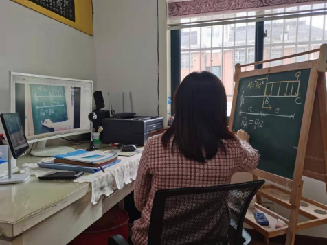小黑板发挥大作用。赵丽霞老师巧妙的把家里孩子的小黑板搬进了“线上课堂”,于是,传统教具黑板,摇身一变,成了网课时代的“黑科技”,线上教学获众多学子点赞。