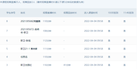 此外,在督导过程中,也发现一些不足,并提出教学建议,如:个别学生未能按时进群签到或持续在线听课;个别教师不清楚学校课堂教学错峰上下课时间的规定,搞错了下课时间。线上教学督导小组及时与授课教师进行交流,建议任课教师加强线上教学管理,强调学习纪律,通过增设“出勤签到”等平时成绩考核内容的方式对学生进行约束。