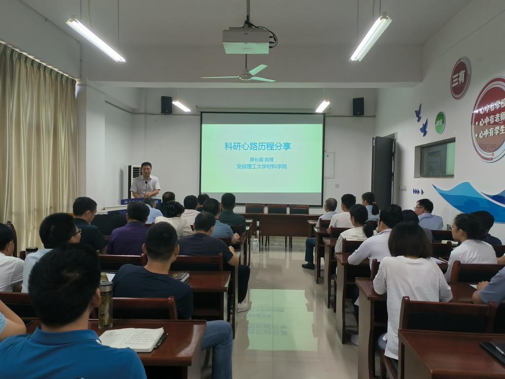 9月1日下午,37000cm威尼斯邀请材料学院薛长国教授在明道楼A321作了题为“科研心路历程分享”的报告,37000cm威尼斯全体教职工参加了会议。分享会由学院党委书记刘艳主持。