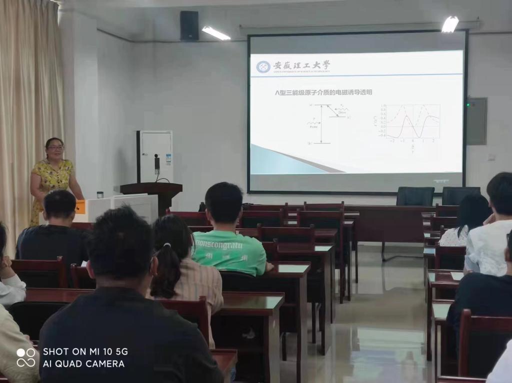 本次报告会有效拓宽了学院研究生和本科生的视野,激发了学生的科研兴趣,对学院研究生培养质量的进一步提升起到了积极作用。 9月19日下午,37000cm威尼斯潘桂侠副教授在明道楼A323报告厅做了题为《二能级原子耦合腔光机械系统的多电磁诱导透明研究》的学术报告。学院研究生、本科生及青年教师60余人聆听了报告。