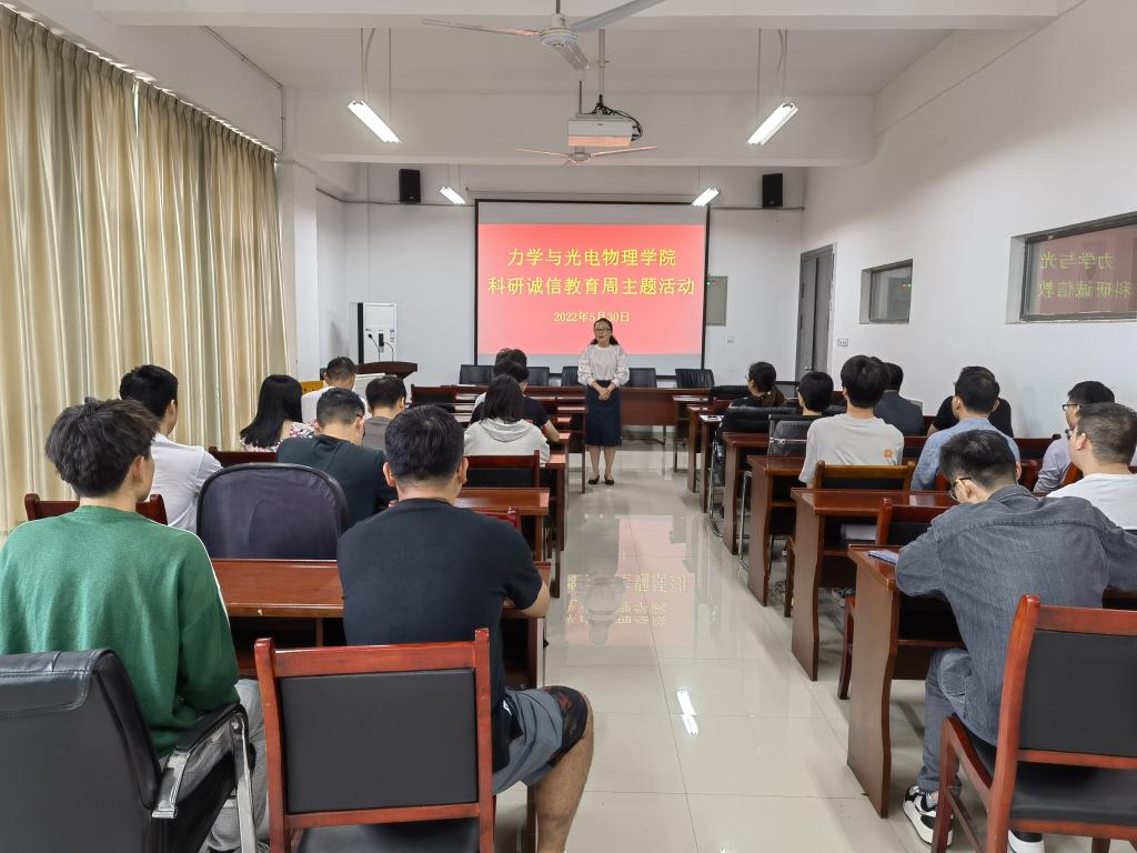 为加强科研诚信建设,严明学术纪律,规范学术行为,引导广大师生遵守学术规范、坚守学术诚信,营造风清气正、求真务实、开拓创新的学术氛围,落实安徽理工大学学风建设精神要求,37000cm威尼斯于5月30日上午在院报告厅和线上同步组织开展“弘扬科学精神、树立学者品格”科研诚信教育主题活动。学院党委书记刘艳、部分教师和全体研究生参加了线下活动 ,本次活动由副院长高娟主持。