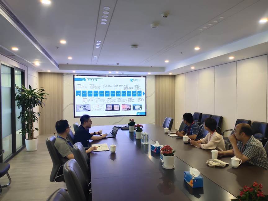 随后一行人走访了苏州晶湛半导体有限公司,双方在企业负责人的陪同下进行了深入的座谈与交流,共同探讨科研合作的潜在机会。在座谈会上公司高管团队首先向学院代表详细介绍了公司的发展历程、研发重点、产品创新、技术需求以及未来的发展规划。高娟代表学院,全面介绍了学院的基本情况以及科研方向,其他成员也分别就各自的研究领域进行了的介绍和交流。