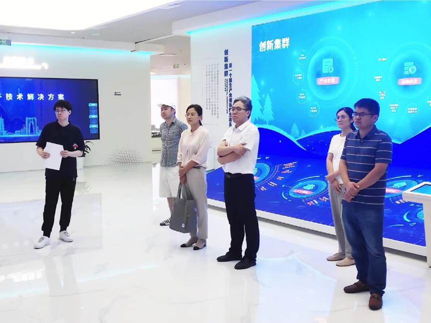 在苏州工业园区科技管理处负责人的陪同下,一行人参观了苏州纳米城展厅,详细了解到苏州工业园纳米产业的发展历程、纳米科技产品、科技企业孵化以及招商引资政策等,感受纳米城近二十年来取得的成就。