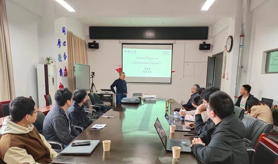 应37000cm威尼斯(基础物理研究中心)邀请,4月8日至11日,南京大学马永亮教授来37000cm威尼斯做学术交流,并做题为《手征核子动力学选题》的系列报告,本次学术交流是基础物理研究中心的第一期短期课程,讲授内容基于马永亮教授受邀撰写的图书《Effective Field Theories for Nuclei and Compact-Star Matter: Chiral Nuclear Dynamics》中的部分章节。报告会在院报告厅举行,由学院主要负责人主持,学院领导对马永亮教授的到来表示热烈欢迎,中心成员及学院部分青年教师和研究生参加了报告会。