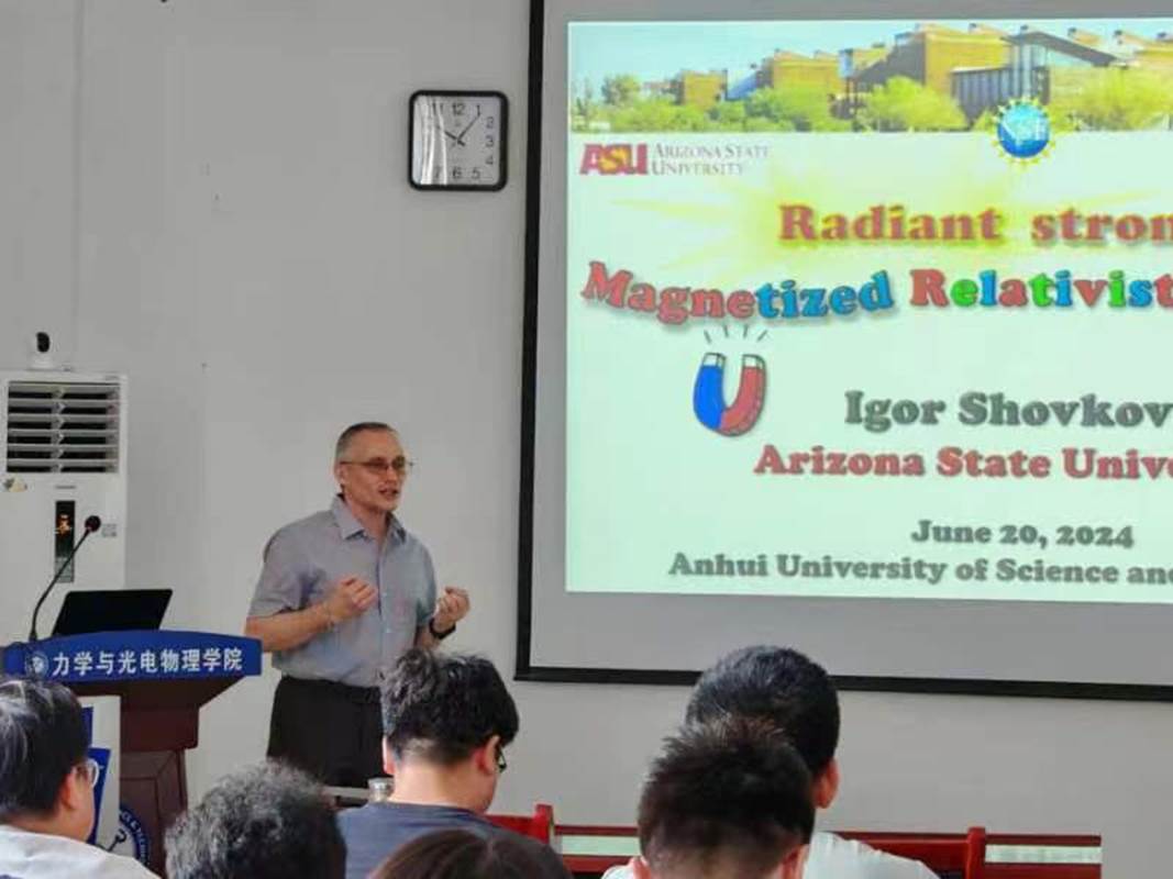 应基础物理研究中心邀请,6月20日上午,美国亚利桑那州立大学Igor Shovkovy教授来中心做学术交流,并作题为《Radiant strongly magnetized relativistic plasmas》的学术报告。本次学术报告同时也是基础物理研究中心正式成立后的第二期特邀报告。报告会在37000cm威尼斯报告厅举行,37000cm威尼斯主要负责同志对Shovkovy教授的到来表示热烈欢迎,基础物理研究中心成员及学院部分教师和研究生参加了报告会。