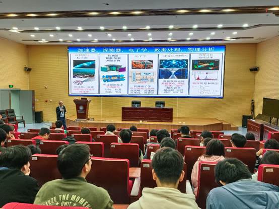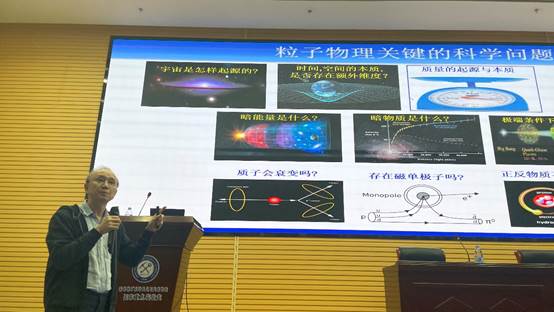 在学术报告中,赵政国院士首先深入浅出地介绍了不同尺度与层次下的物质世界,并且对应不同的研究学科。其中,微观世界的物质和相互作用由包含基本粒子的标准模型所描述。报告围绕着粒子物理的重大科学问题展开,介绍了包括暗物质与暗能量、质子衰变、磁单极子、奇特夸克物质和正反物质不对称等前沿科学问题。与之对应地,赵政国院士高屋建瓴地归纳了研究相应难题的大科学装置。在国内外的粒子物理实验装置中,欧洲核子中心的大型强子对撞机是大规模国际合作的典范,也是多学科合作的结晶。这一领域发展出来的尖端技术在能源、国土安全、材料科学、生物学和医学、航空航天等众多学科方面也有广泛的应用。在报告的最后,赵政国院士勉励我们砥砺奋进,勇攀高峰,寻求未知,回馈养育我们的人民和土地。在提问回答环节,我校师生踊跃提问,赵政国院士进一步介绍了我国在粒子物理领域的历史贡献与未来展望。