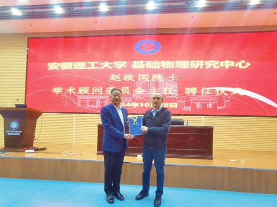 报告会开始之前,举行了基础物理研究中心学术顾问委员会主任聘任仪式。宫能平代表学校聘请赵政国院士担任基础物理研究中心首届学术顾问委员会主任,并为赵政国教授颁发聘书。