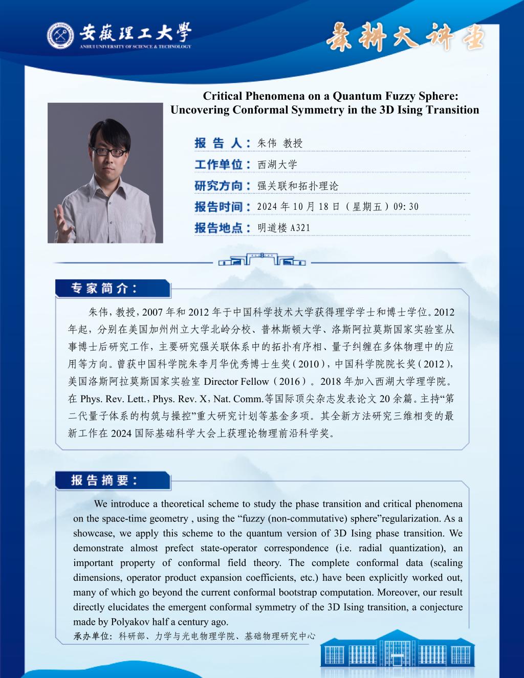 上一条:舜耕大讲堂:法国国家科研中心Pierre Ruterana教授访问暨中心特邀讲座(5) 下一条:基础物理研究中心《2024系列学术报告》第九期:高精度全局分子势能面的构建和分子反应动力学的研究(马宏宇)